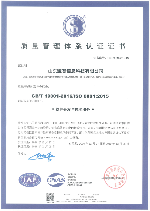 山東耀智信息科技有限公司成立于2015年1月,位于泉城濟南國家級孵化器—齊魯軟件園, 是一家新興的致力于制藥、化工等行業信息化的軟件企業,是國家高新技術企業。